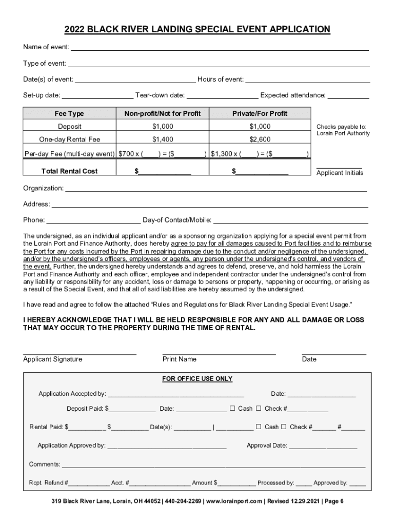 BLACK RIVER LANDING SPECIAL EVENT USAGE
