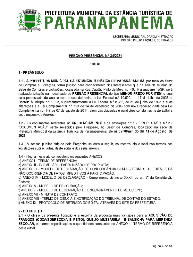 Caso haja dúvidas, entrar em contato com o órgão responsável pela licitação para esclarecimentos.