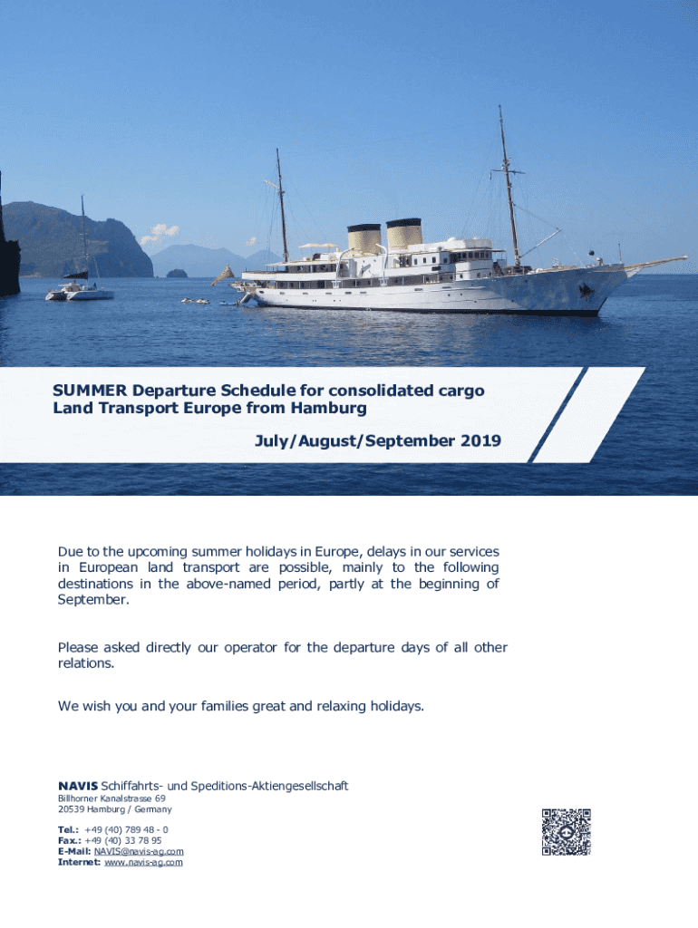 July/August/September 2019Due to the upcoming summer holidays in Europe, delays in our services