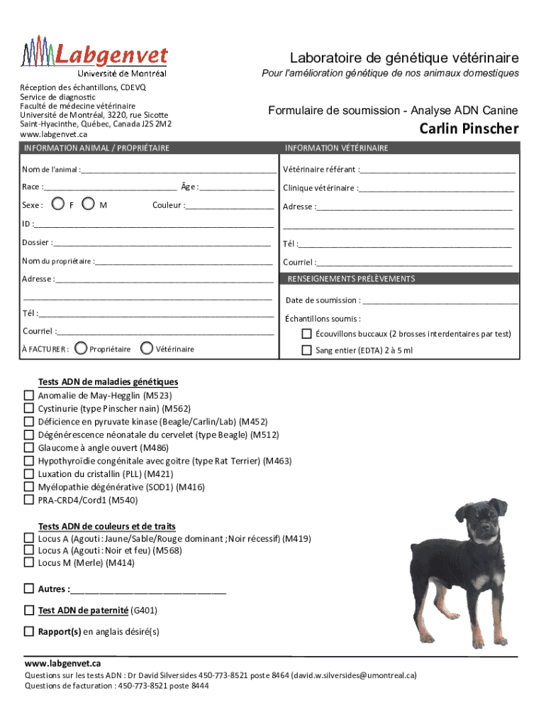 Pour remplir le formulaire, vous devez fournir des informations médicales précises, y compris les résultats des tests sanguins et les symptômes observés.