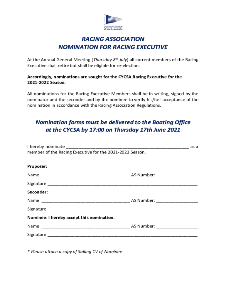 At the Annual General Meeting (Thursday 8th July) all current members of the Racing