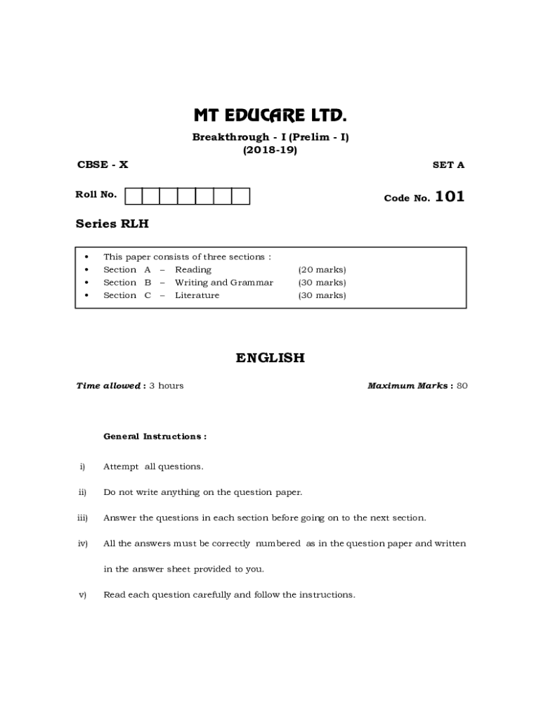 Get the free Breakthrough - I (Prelim - I)