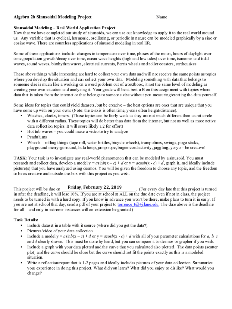 Algebra 2b Sinusoidal Modeling Projectile ___Sinusoidal Modeling Real World Application Project