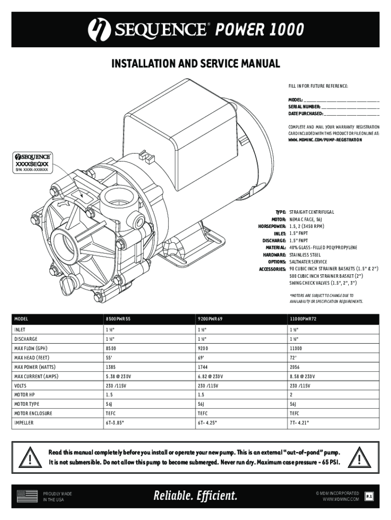 POWER 1000INSTALLATION AND SERVICE MANUAL FILL IN FOR FUTURE REFERENCE: MODEL: ___ SERIAL NUMBER: ___ DATE PURCHASED: ___ COMPLETE AND MAIL YOUR WARRANTY REGISTRATION CARD INCLUDED WITH THIS PRODUCT