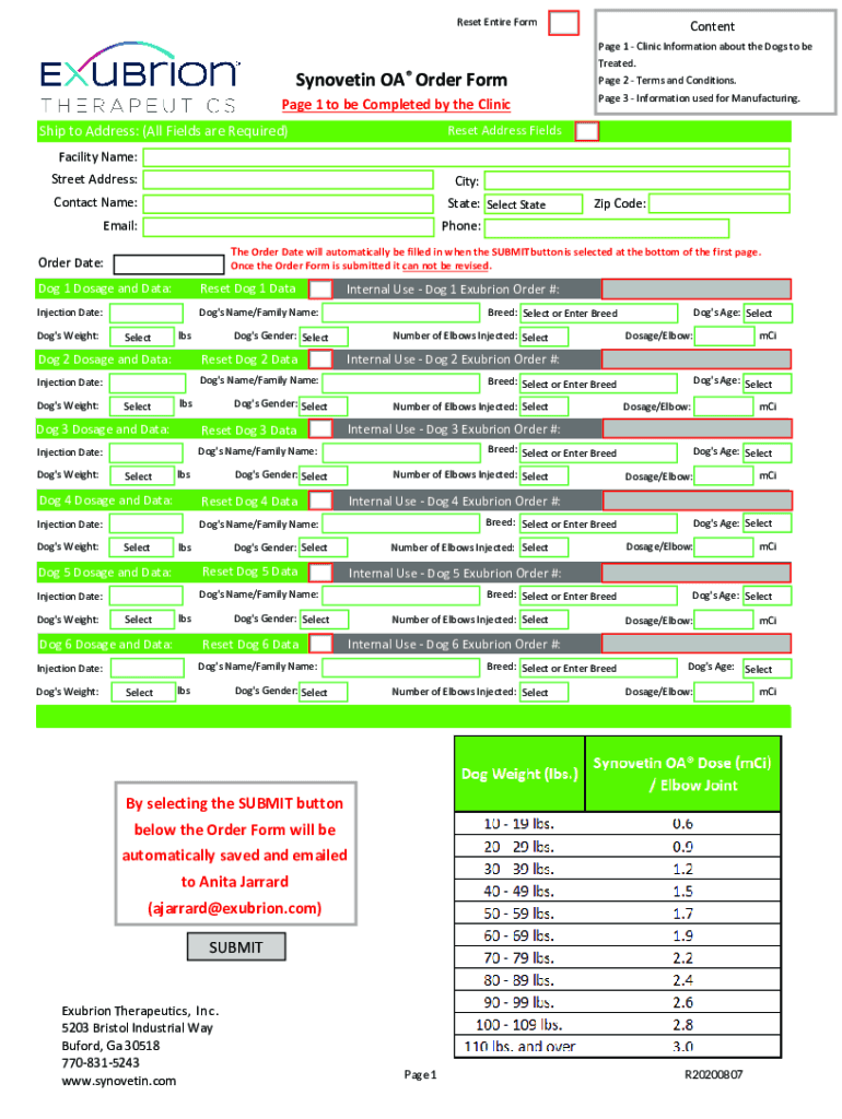Welcome to Synovitis OA Regulatory Starter Packets packet should be provided to any licensee newly administering or preparing to administer