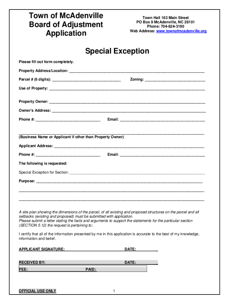 Web Address: www.townofmcadenville.orgSpecial Exception