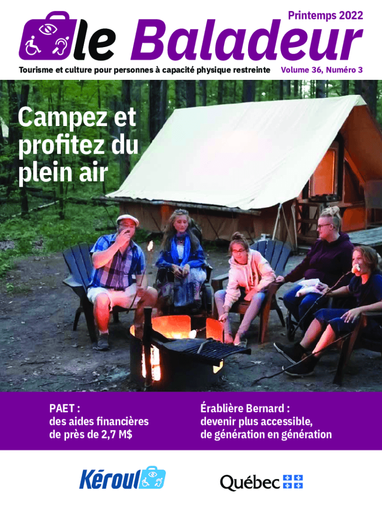 Printemps 2022Tourisme et culture pour personnes capacit physique restreinteVolume 36, Numro 3Campez et profitez du plein airPAET : des aides financires de prs de 2,7 M$rablire Bernard: devenir plus