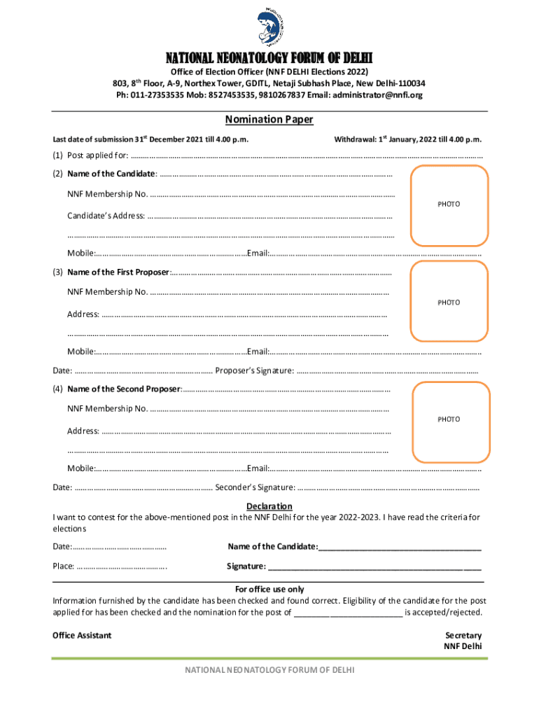 NATIONAL NEONATOLOGY FORUM OF DELHIOffice of Election Officer (NNF DELHI Elections 2022)