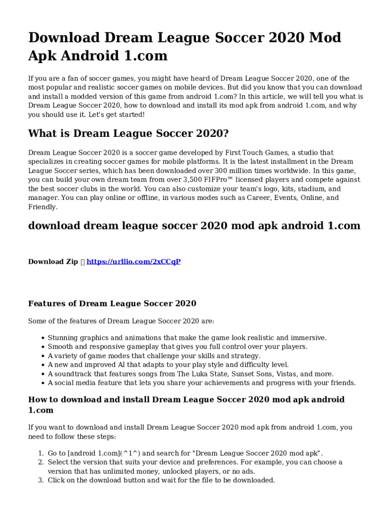 Download Dream League Soccer 2020 Mod Apk Android 1.com If you are a fan of soccer games, you might have heard of Dream League Soccer 2020, one of the most popular and realistic soccer games on mobile