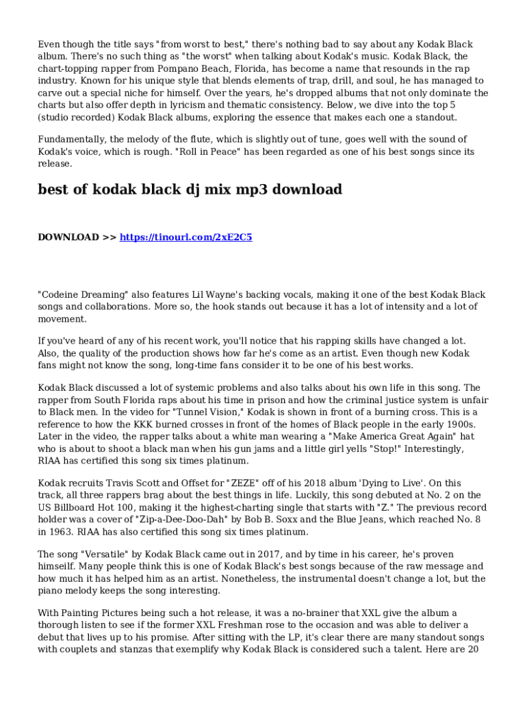 Even though the title says \"from worst to best,\" there\'s nothing bad to say about any Kodak Black album. There\'s no such thing as \"the worst\" when talking about Kodak\'s music. Kodak Black,