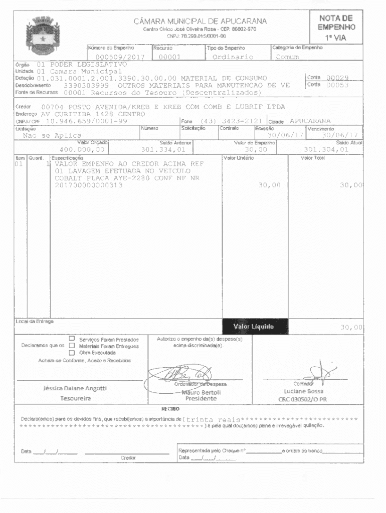 Obtenha o gratuito NOTA DE LIQUIDAO - Cmara Municipal de Apucarana