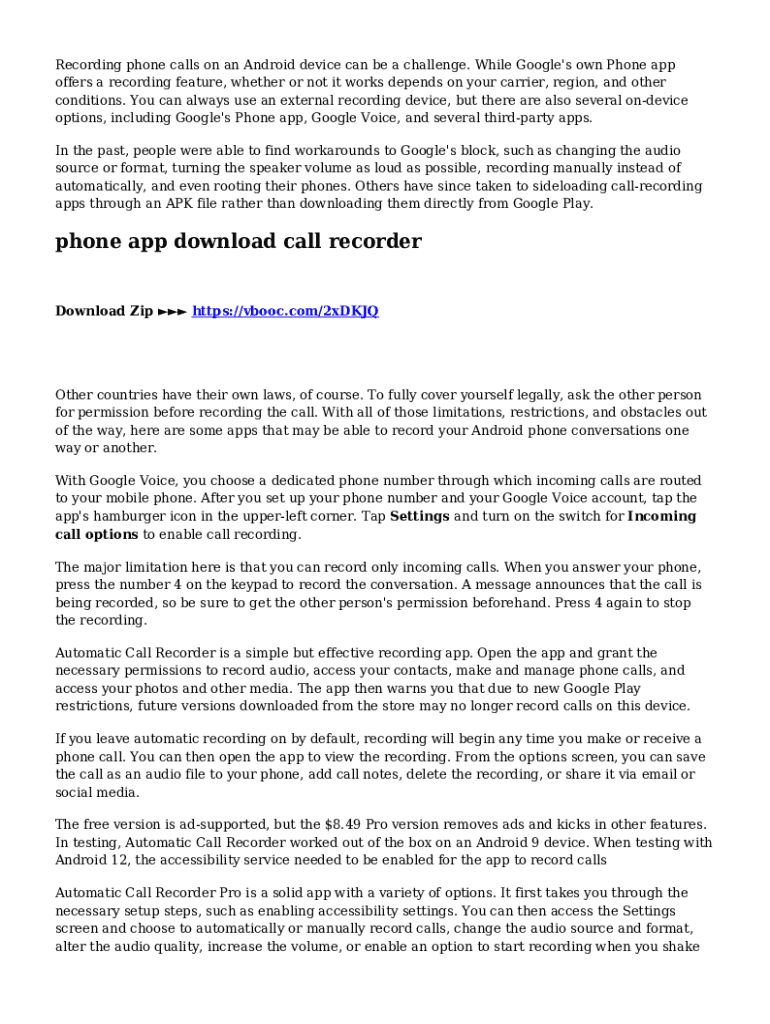 Recording phone calls on an Android device can be a challenge. While Google\'s own Phone app offers a recording feature, whether or not it works depends on your carrier, region, and other conditions.