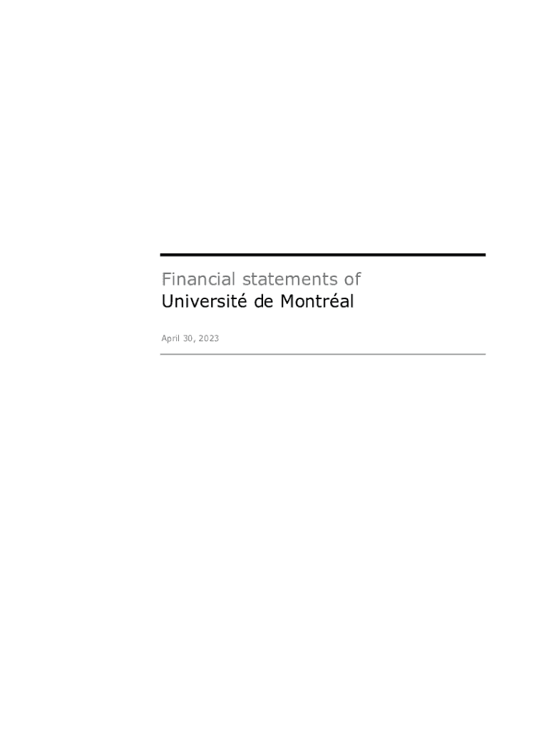 Financial statements of University de Montral April 30, 2023Independent Auditors Report .............................................................. 12 Statement of operations and changes in fund
