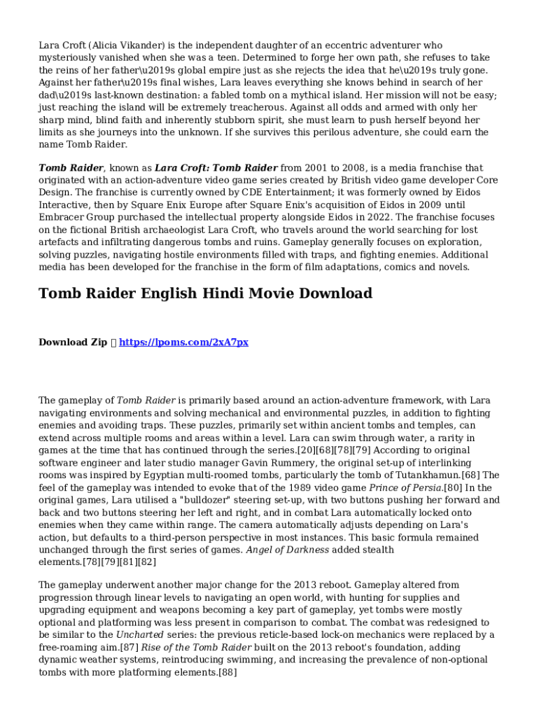 Fill out your tomb raider english hindi online with pdfFiller!