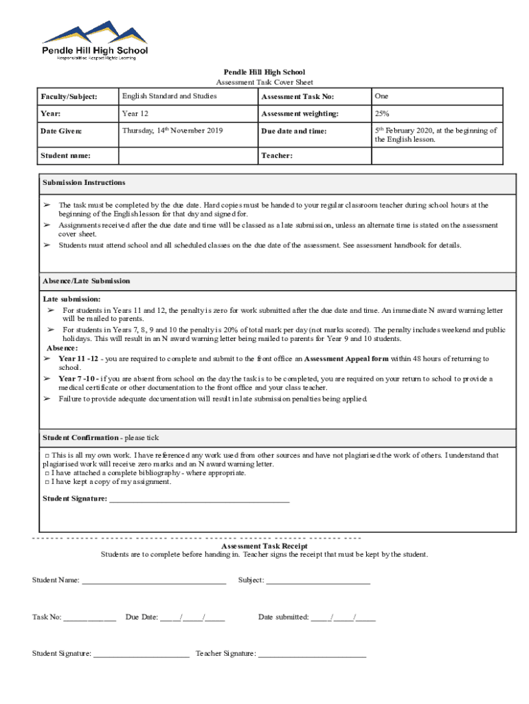 Get the free English Standard and Studies Assessment Task No: One ...