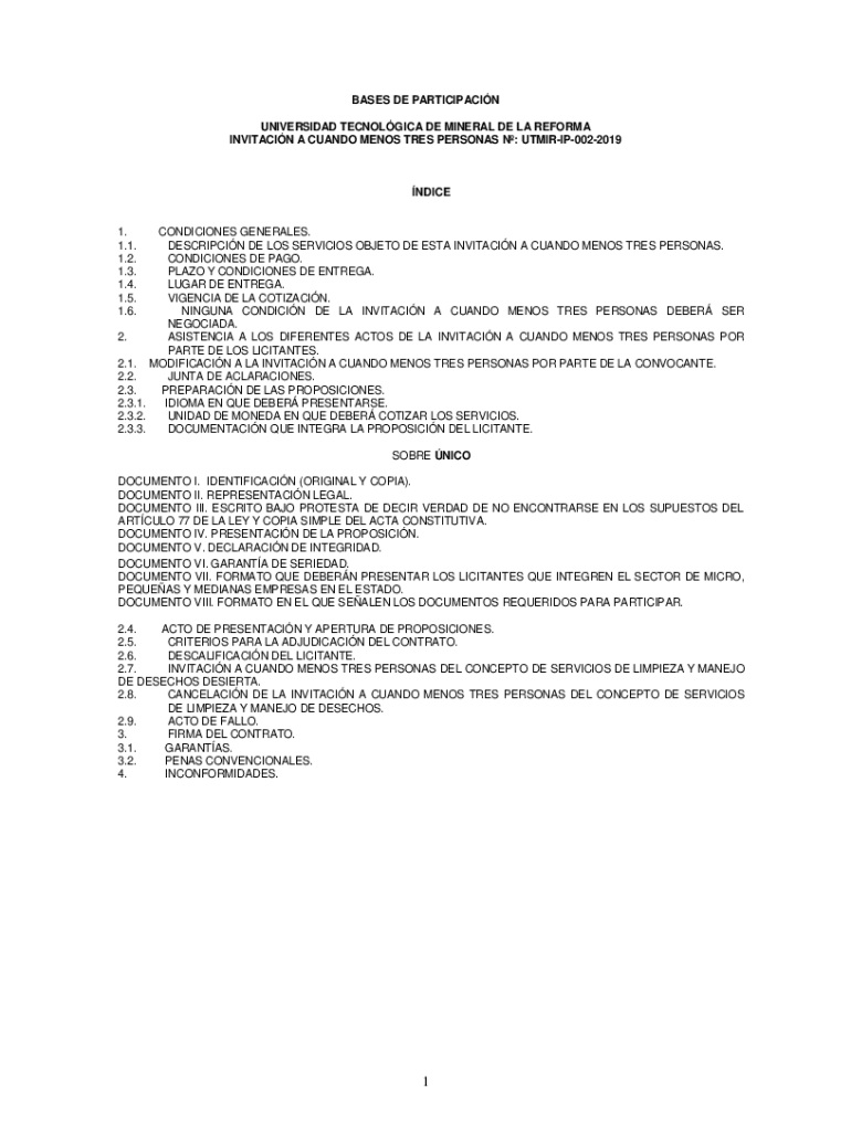 INVITACIN A CUANDO MENOS TRES PERSONAS N: UTMIRIP0022019NDICE1.