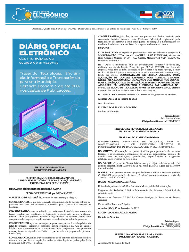 Amazonas, Quartafeira, 9 De Maro De 2022 Dirio Oficial dos Municpios do Estado do Amazonas Ano: XIII / Nmero: 3069CONSIDERANDO, por fim, o teor do parecer conclusivo emitido pela Assessoria Jurdica