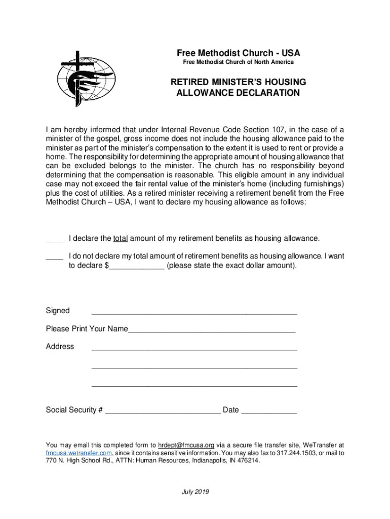 Free Methodist Church of North AmericaRETIRED MINISTERS HOUSING