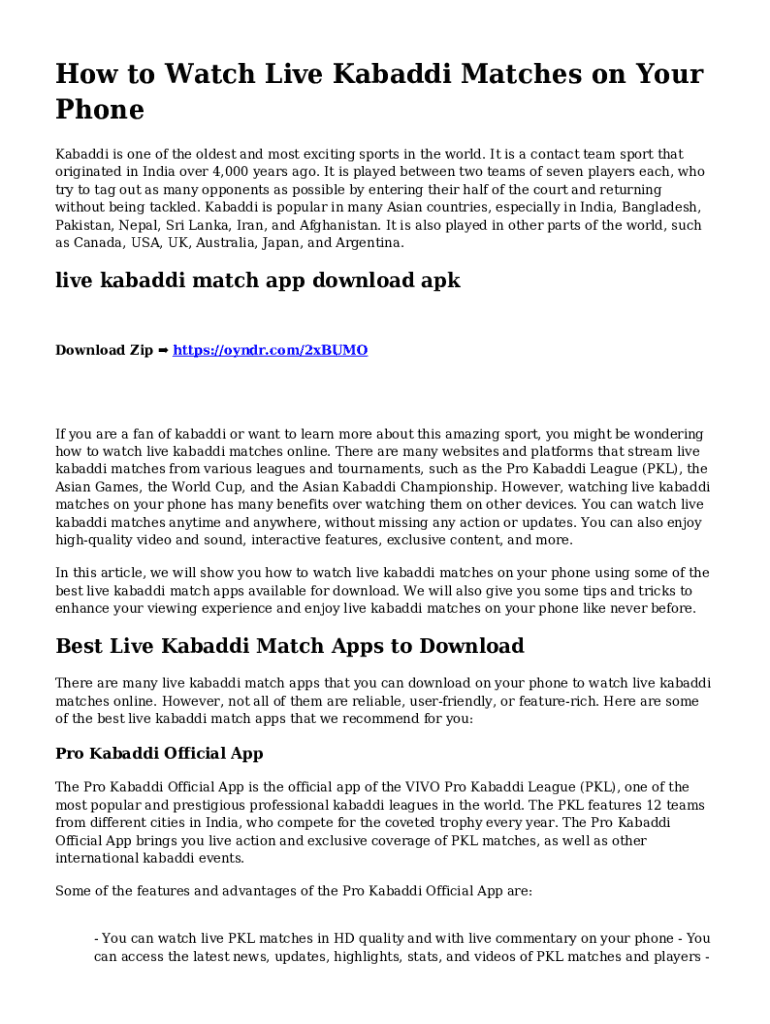 How to Watch Live Kabaddi Matches on Your Phone Kabaddi is one of the oldest and most exciting sports in the world. It is a contact team sport that originated in India over 4,000 years ago. It is