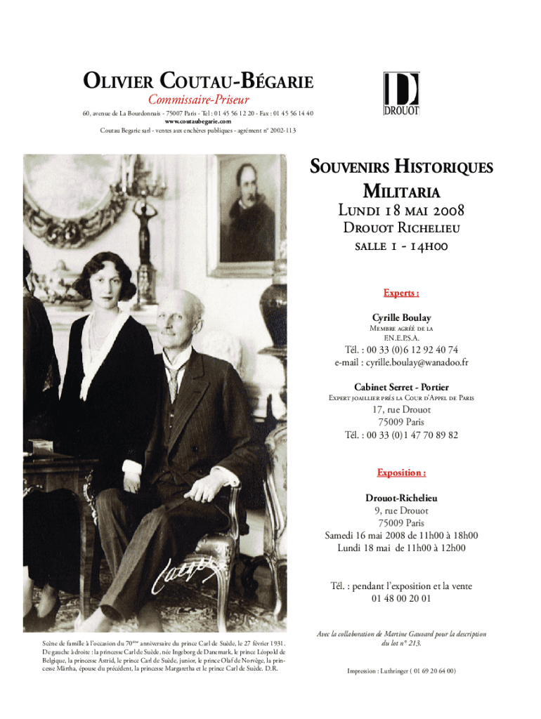 OLIVIER COUTAUBGARIE CommissairePriseur60, avenue de La Bourdonnais 75007 Paris Tel : 01 45 56 12 20 Fax : 01 45 56 14 40 www.coutaubegarie.com Coutau Begarie sarl ventes aux enchres publiques agrment