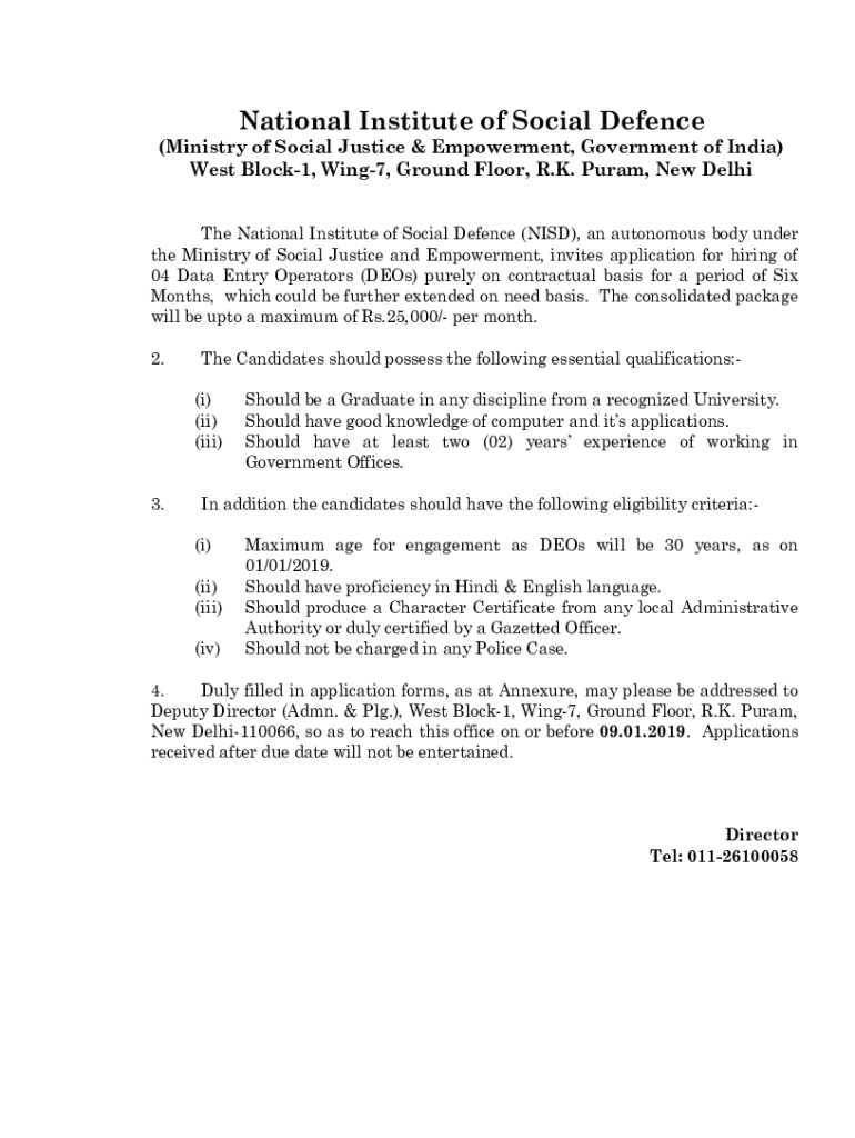 Get the free National Institute of Social Defence - NISD