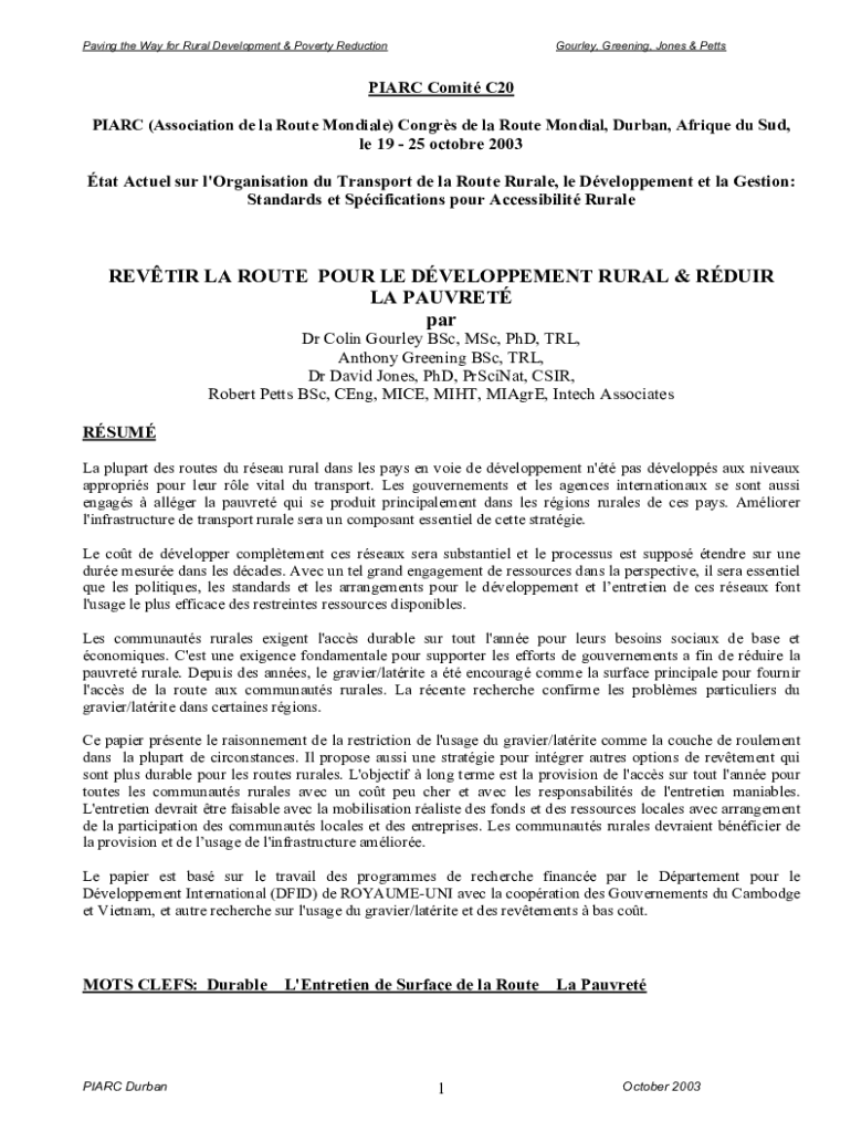Obtenir le gratuit REVETIR LA ROUTE POUR LE DEVELOPPEMENT RURAL & REDUIR LA PAUVRETE