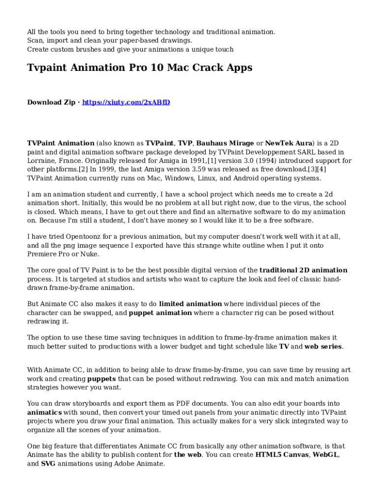 All the tools you need to bring together technology and traditional animation. Scan, import and clean your paperbased drawings. Create custom brushes and give your animations a unique touchTvpaint