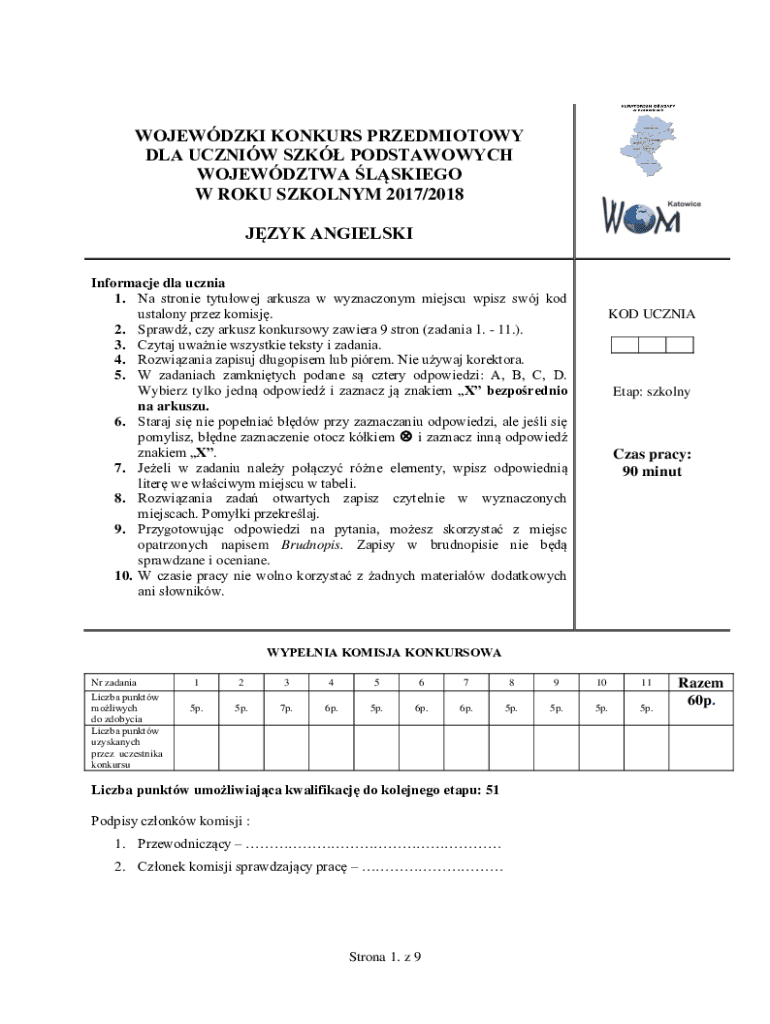 Get the free Na stronie tytuowej arkusza w wyznaczonym miejscu wpisz swj kod