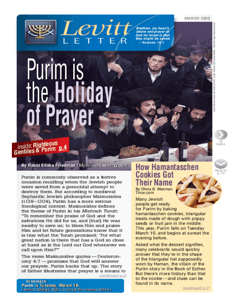 L E T T E RIsraeli Orthodox Jewish men celebrate Purim (credit: Avinoam Faltin via the PikiWiki Israel free image collection project)LevittMARCH 2020 Brethren, my hearts desire and prayer to God for