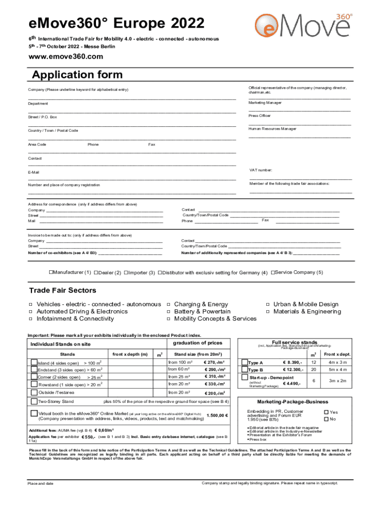 5th 7th October 2022 Messe Berlinwww.emove360.comApplication form