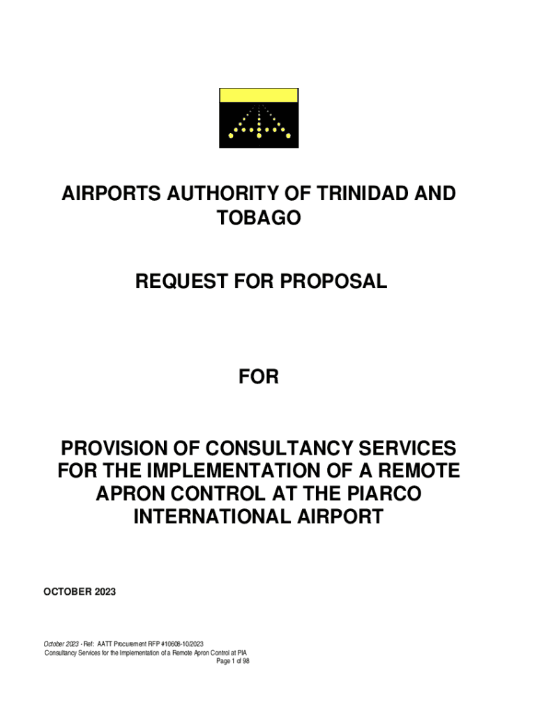 AIRPORTS AUTHORITY OF TRINIDAD AND TOBAGO REQUEST FOR PROPOSALFORPROVISION OF CONSULTANCY SERVICES FOR THE IMPLEMENTATION OF A REMOTE APRON CONTROL AT THE PIARCO INTERNATIONAL AIRPORTOCTOBER 2023October