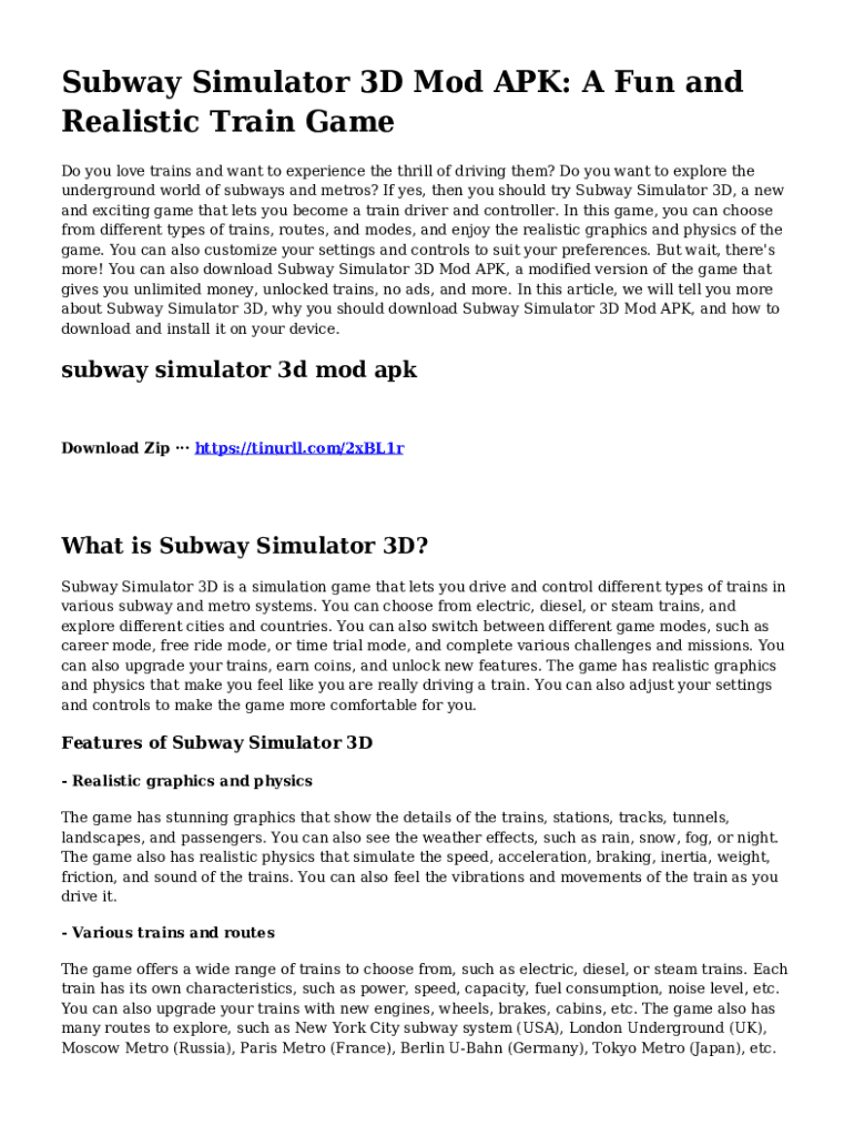 Subway Simulator 3D Mod APK: A Fun and Realistic Train Game Do you love trains and want to experience the thrill of driving them? Do you want to explore the underground world of subways and metros?