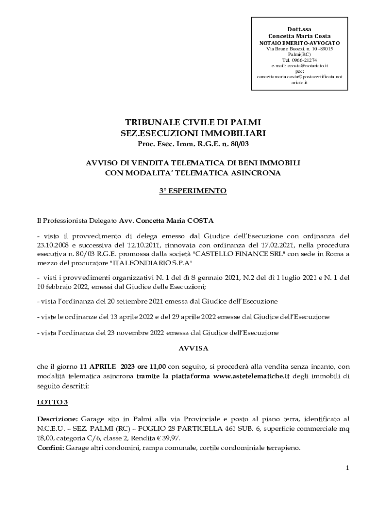 Dott.ssa Concetta Maria Costa NOTAIO EMERITOAVVOCATO Via Bruno Buozzi, n. 10 89015 Palmi(RC) Tel. 096621274 email: ccosta@notariato.it pec: concettamaria.costa@postacertificata.not ariato.itTRIBUNALE