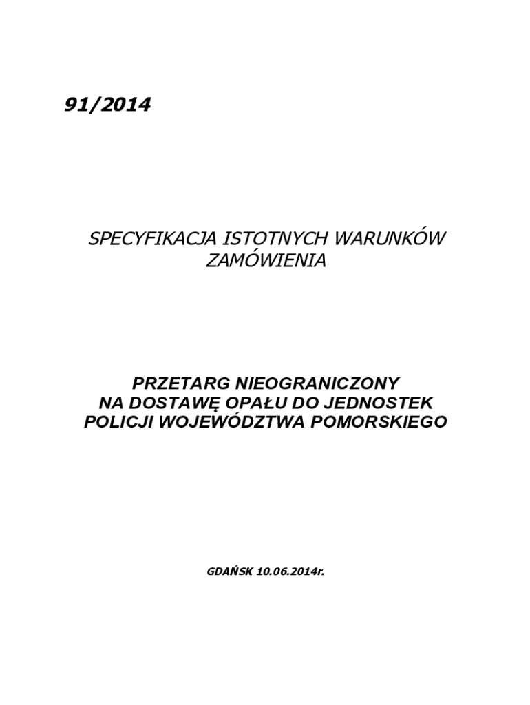 91/2014SPECYFIKACJA ISTOTNYCH WARUNKW ZAMWIENIAPRZETARG NIEOGRANICZONY NA DOSTAW OPAU DO JEDNOSTEK POLICJI WOJEWDZTWA POMORSKIEGOGDASK 10.06.2014r.SPIS TRECI ROZDZIA I POSTANOWIENIA OGLNE ROZDZIA