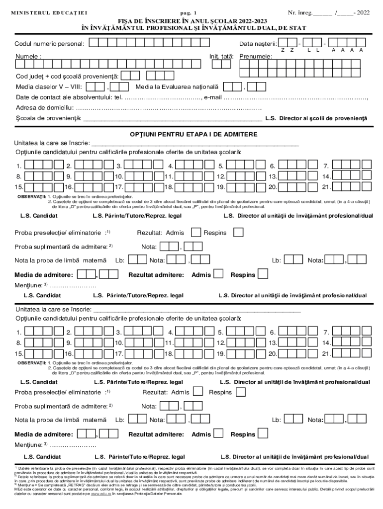 MINISTERUL EDUCAIEINr. nreg.___ /___ 2022pag. 1FIA DE NSCRIERE N ANUL COLAR 20222023
