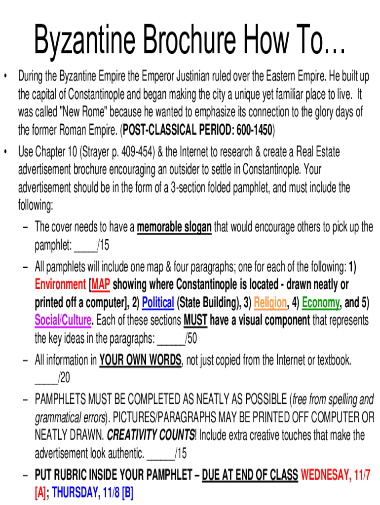 Byzantine Brochure How To During the Byzantine Empire the Emperor Justinian ruled over the Eastern Empire. He built up the capital of Constantinople and began making the city a unique yet familiar