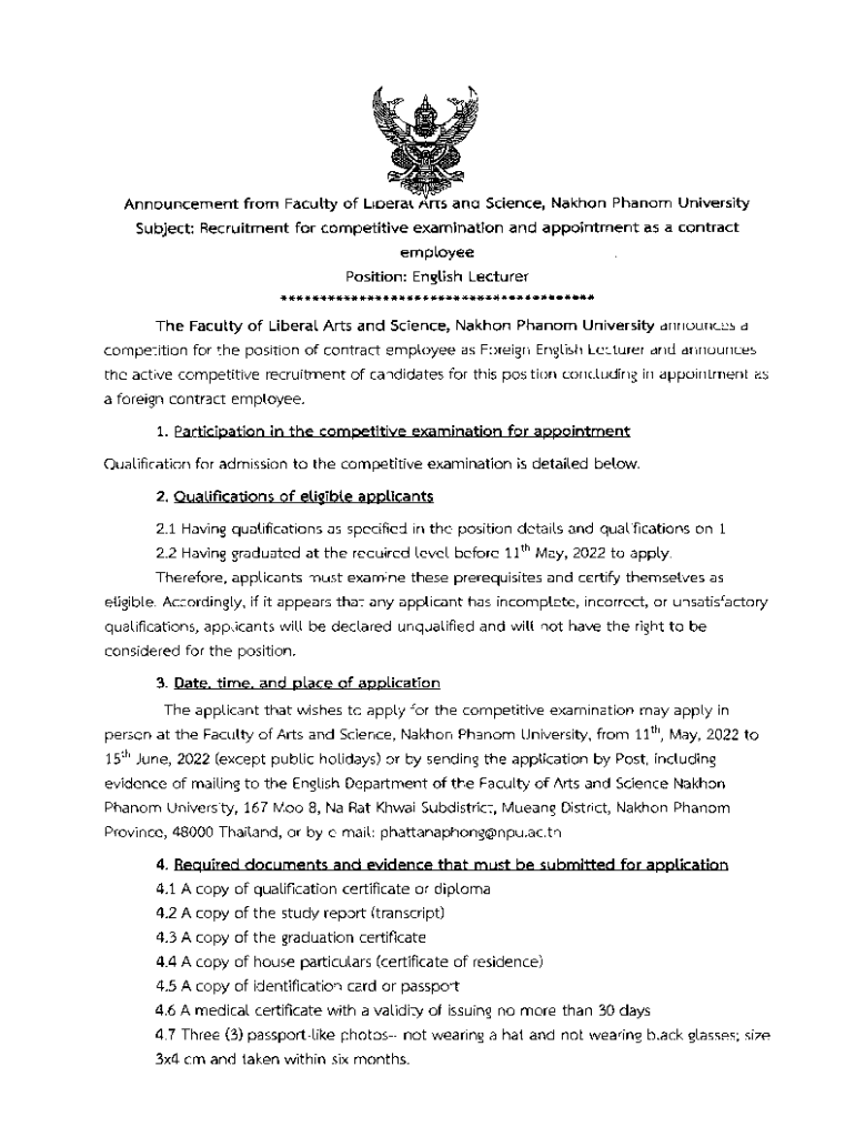 Visit the Nakhon Phanom University website or contact the university directly for information on teacher vacancies.