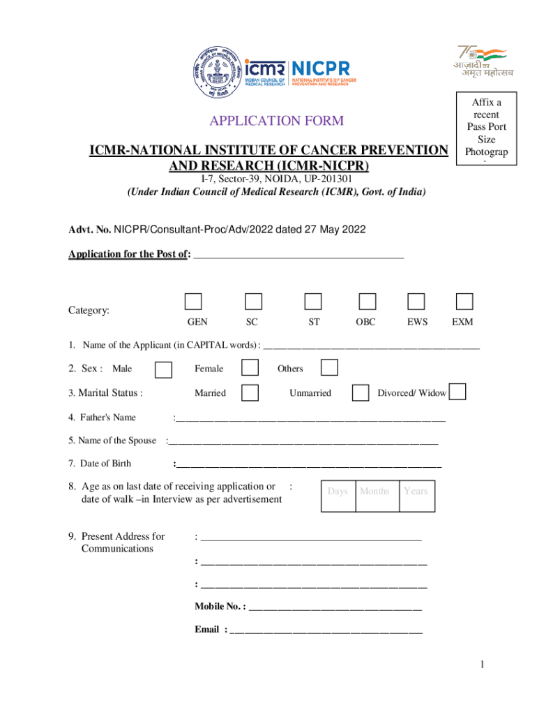 To fill out the ICMR-NICPR form, researchers must follow the guidelines outlined by the institute, which typically includes providing details of the research project, objectives, methodology, and expected outcomes.