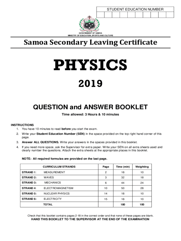 MINISTRY OF EDUCATION, SPORTS AND CULTURE Samoa Secondary Leaving CertificatePHYSICS