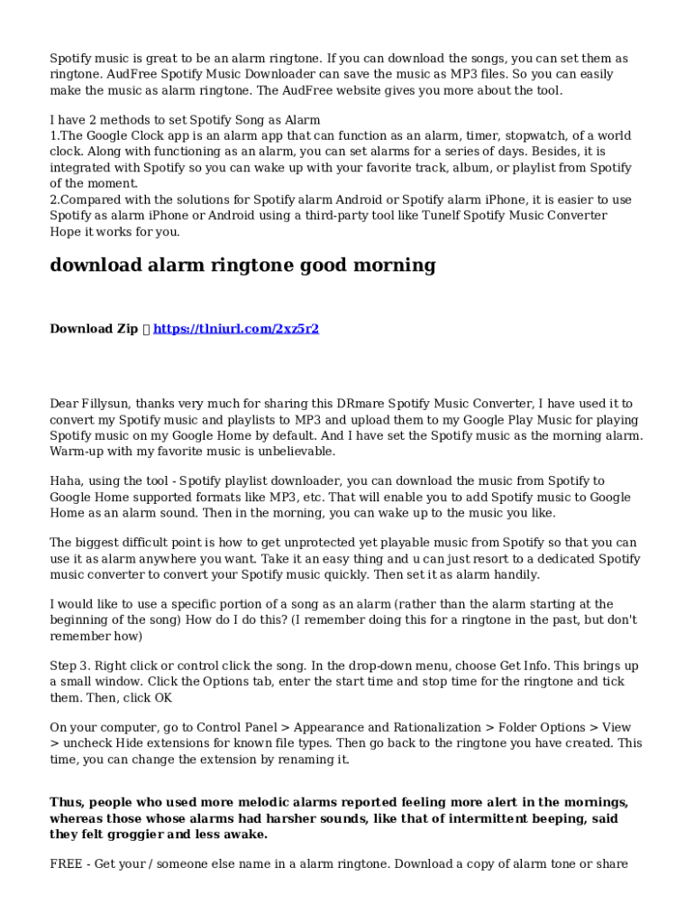 Spotify's music is great to be an alarm ringtone. If you can download the songs, you can set them as