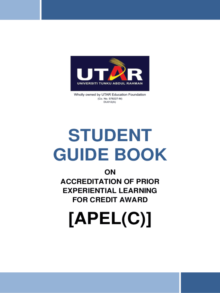 STUDENT GUIDE BOOK ON ACCREDITATION OF PRIOR EXPERIENTIAL LEARNING FOR CREDIT AWARD[APEL(C)]TABLE OF CONTENTS1.0POLICY AND CRITERIA OF APEL(C) ................................................................................