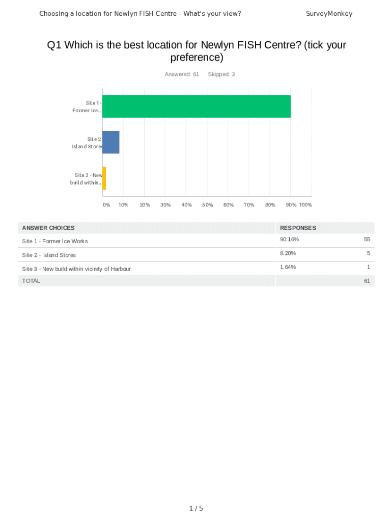 Choosing a location for Newlyn FISH Centre What\'s your view?SurveyMonkeyQ1 Which is the best location for Newlyn FISH Centre? (tick your preference) Answered: 61Skipped: 3Site 1 Former Ice...Site