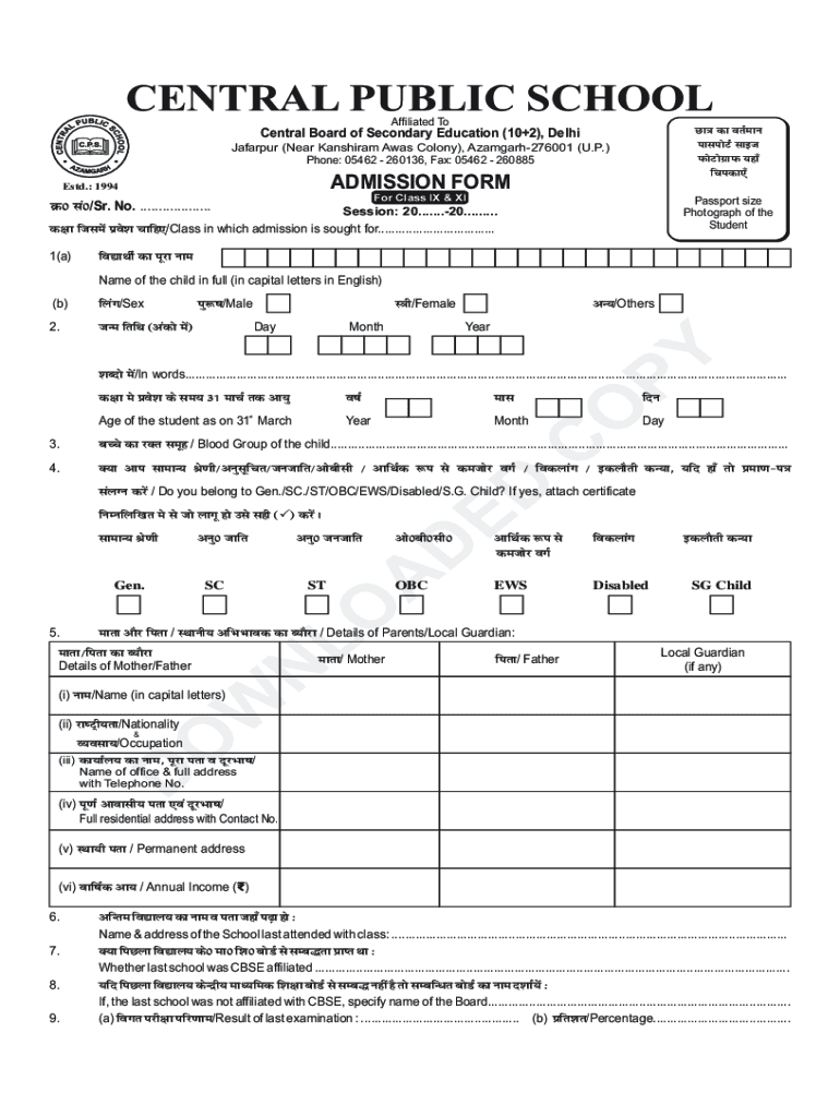 CENTRAL PUBLIC SCHOOL Affiliated ToNk dk orZeku ikliksVZ lkbt QksVksxzkQ ;gk fpidk,Central Board of Secondary Education (10+2), Delhi Jafarpur (Near Kanshiram Awas Colony), Azamgarh276001 (U.P.) Phone:
