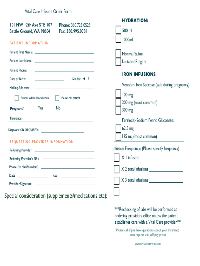 Vital Care Infusion Order Form 101 NW 12th Ave STE 107 Battle Ground, WA 98604Phone: 360.723.0528 Fax: 360.995.0081Patient First Name:Normal Saline Lactated RingersPatient Last Name: Patient Phone: