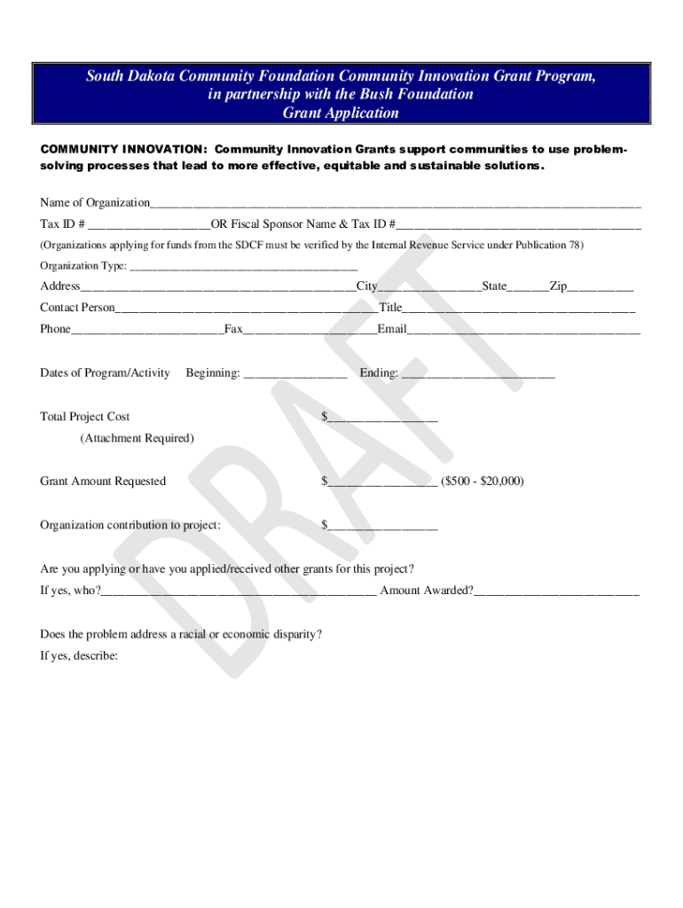 South Dakota Community Foundation Community Innovation Grant Program, in partnership with the Bush Foundation Grant Application COMMUNITY INNOVATION: Community Innovation Grants support communities
