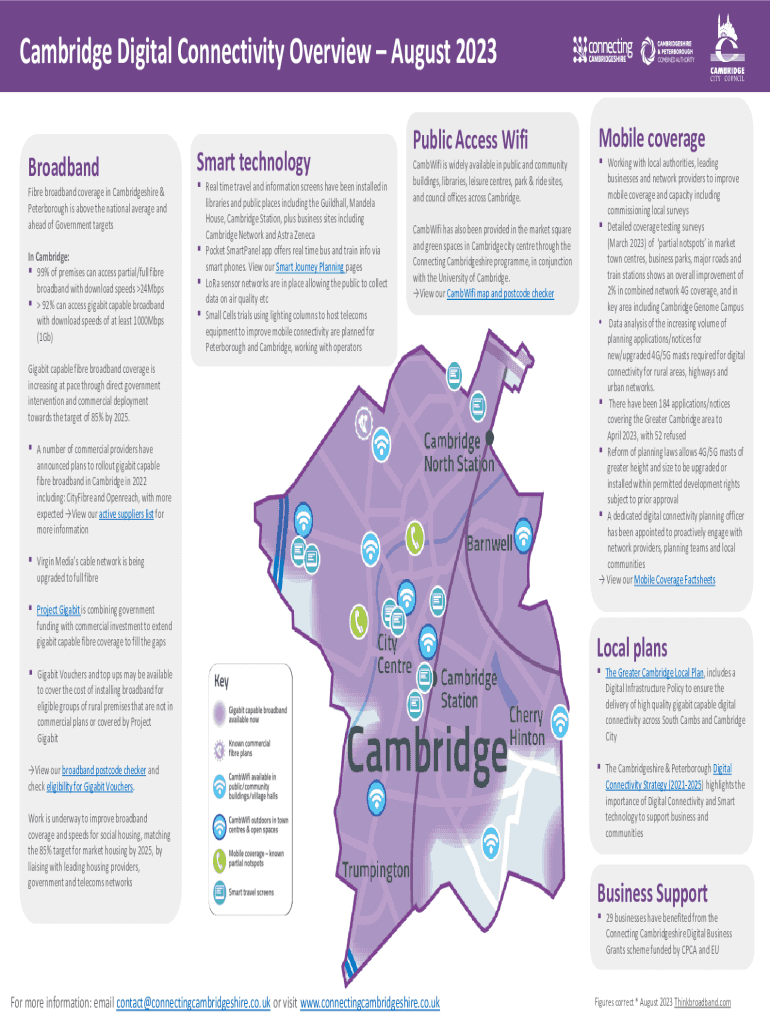 Cambridge Digital Connectivity Overview August 2023 Broadband Fibre broadband coverage in Cambridgeshire & Peterborough is above the national average and ahead of Government targets In Cambridge: