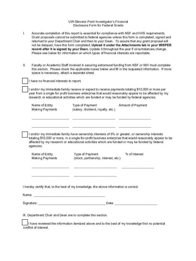 Get the free Non-PHS Funding Financial Disclosure.pdf - UW-Stevens Point