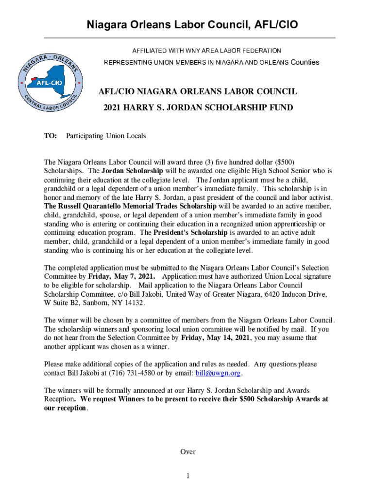 Niagara Orleans Labor Council, AFL/CIO AFFILIATED WITH WNY AREA LABOR FEDERATION REPRESENTING UNION MEMBERS IN NIAGARA AND ORLEANS Counties AFL/CIO NIAGARA ORLEANS LABOR COUNCIL 2021 HARRY S. JORDAN