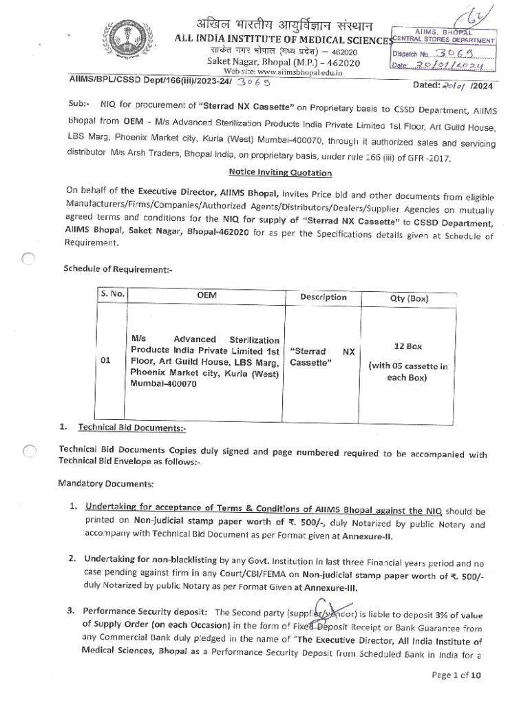 Get the free NOTICE INVITING PRICE QUOTATION (NIPQ) - Bhopal - aiimsbhopal edu