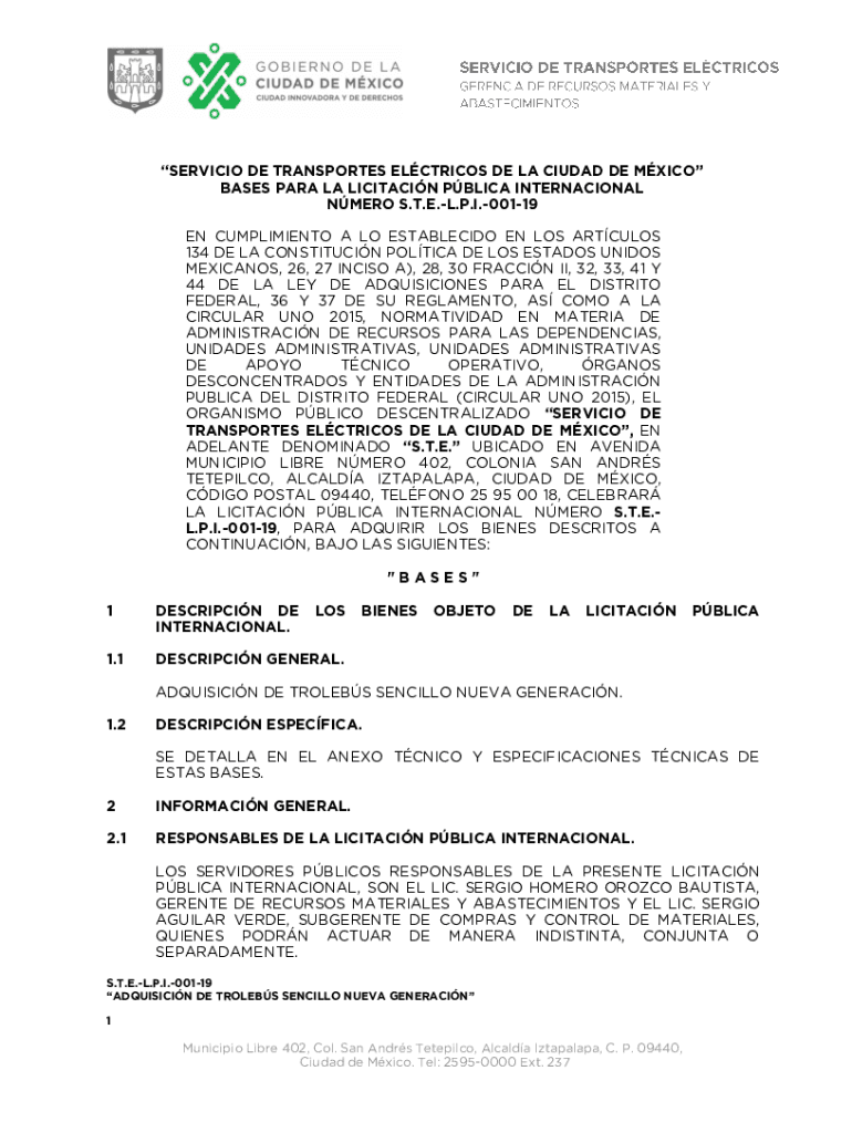SERVICIO DE TRANSPORTES ELCTRICOS DE LA CIUDAD DE MXICO BASES PARA LA LICITACIN PBLICA INTERNACIONAL NMERO S.T.E.L.P.I.00119 EN CUMPLIMIENTO A LO ESTABLECIDO EN LOS ARTCULOS 134 DE LA CONSTITUCIN